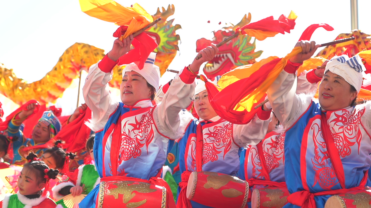 演出結(jié)束后,各鄉(xiāng)鎮(zhèn)表演隊(duì)走上街頭,一路向北,展開(kāi)盛大巡游。紅綢歡搖、鼓點(diǎn)激昂,各具特色的傳統(tǒng)民俗文化在街頭巷尾盡情綻放。隊(duì)伍所到之處,人群如潮,熱鬧非凡。
