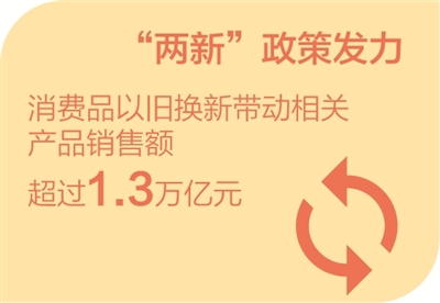 商務(wù)部新聞發(fā)言人何詠前:中央經(jīng)濟(jì)工作會(huì)議提出,大力提振消費(fèi)。初步統(tǒng)計(jì),2024年,全國汽車以舊換新超過680萬輛,超3600萬名消費(fèi)者購買8大類家電以舊換新產(chǎn)品超過5600萬臺(tái),家裝廚衛(wèi)“煥新”補(bǔ)貼產(chǎn)品約6000萬件,電動(dòng)自行車以舊換新超過138萬輛。消費(fèi)品以舊換新帶動(dòng)相關(guān)產(chǎn)品銷售額超過1.3萬億元。