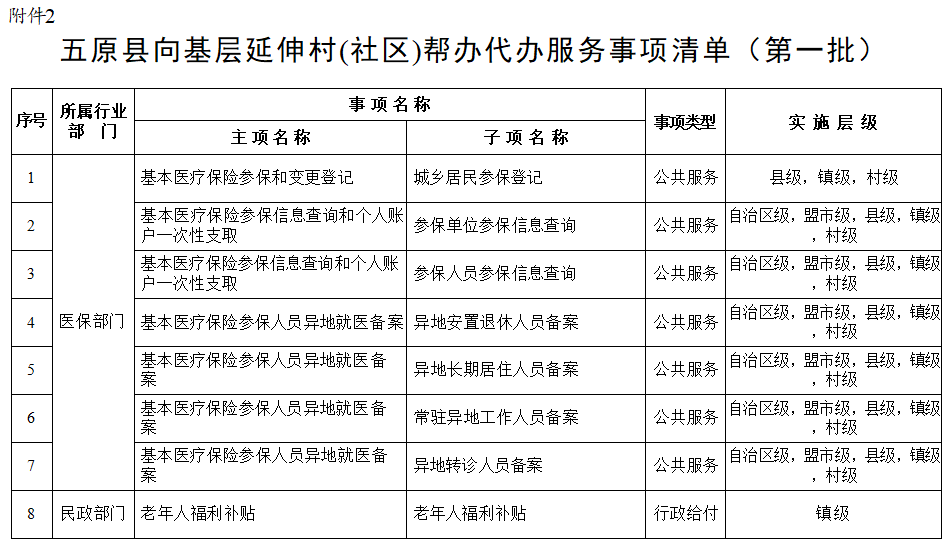 2.五原縣向基層延伸村(社區(qū))幫辦代辦服務(wù)事項清單(第一批)