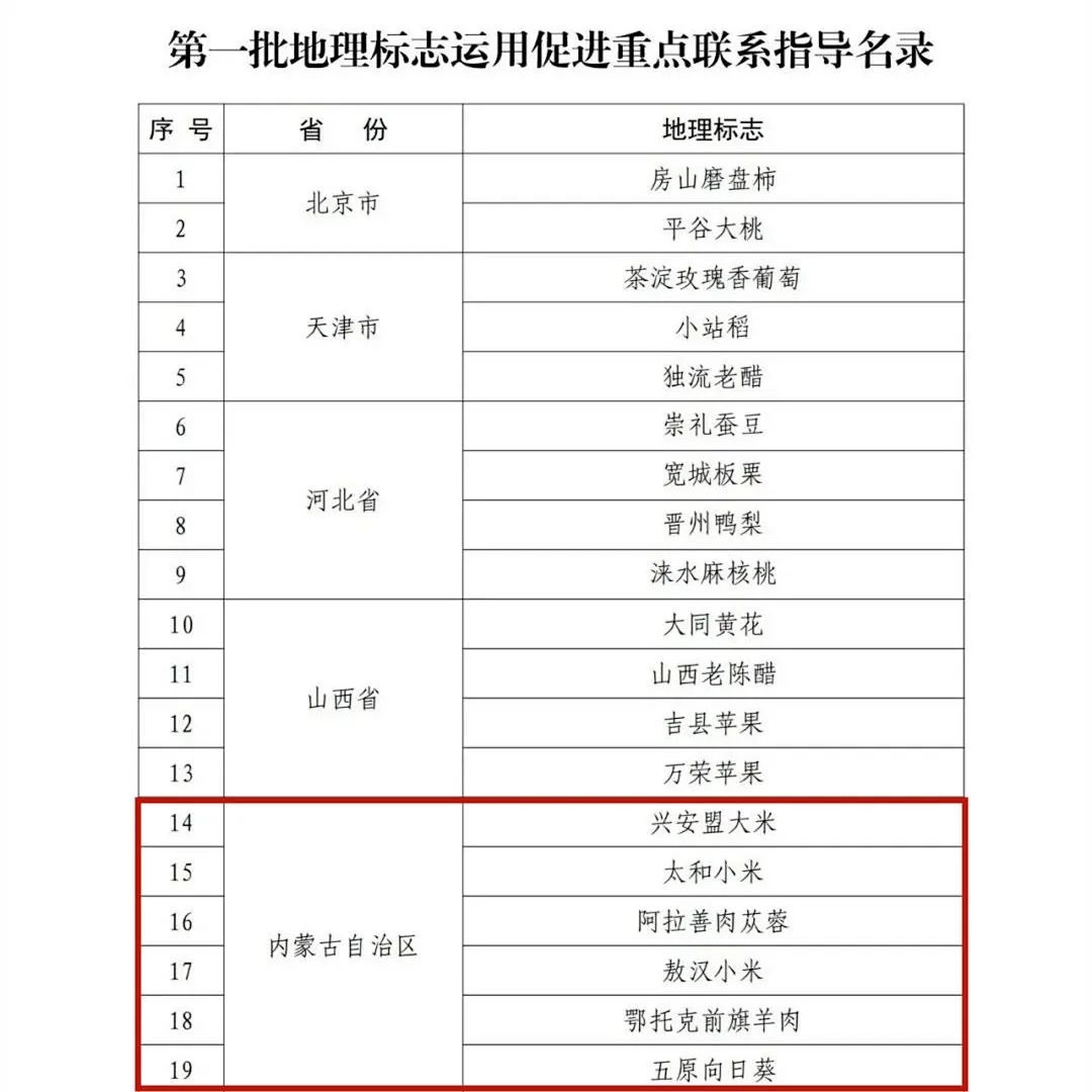 近日,國家知識產(chǎn)權(quán)局辦公室發(fā)布《關(guān)于確定第一批地理標(biāo)志運(yùn)用促進(jìn)重點(diǎn)聯(lián)系指導(dǎo)名錄的通知》,全國首批160件地理標(biāo)志被列入運(yùn)用促進(jìn)重點(diǎn)聯(lián)系指導(dǎo)名錄。其中內(nèi)蒙古自治區(qū)的興安盟大米、太和小米、阿拉善肉蓯蓉、敖漢小米、鄂托克前旗羊肉、五原向日葵6件地理標(biāo)志成功入選。