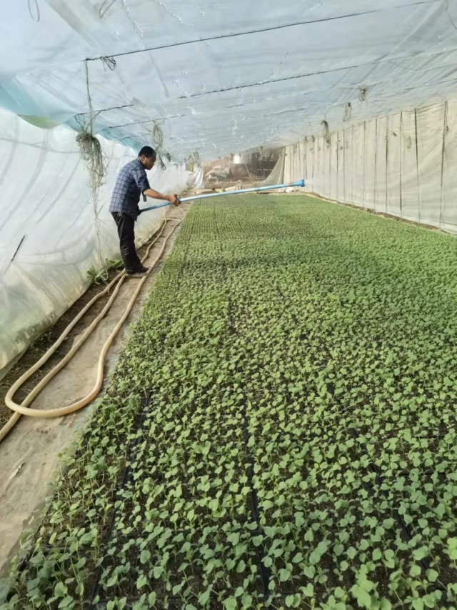 辛海軍給幼苗澆水
