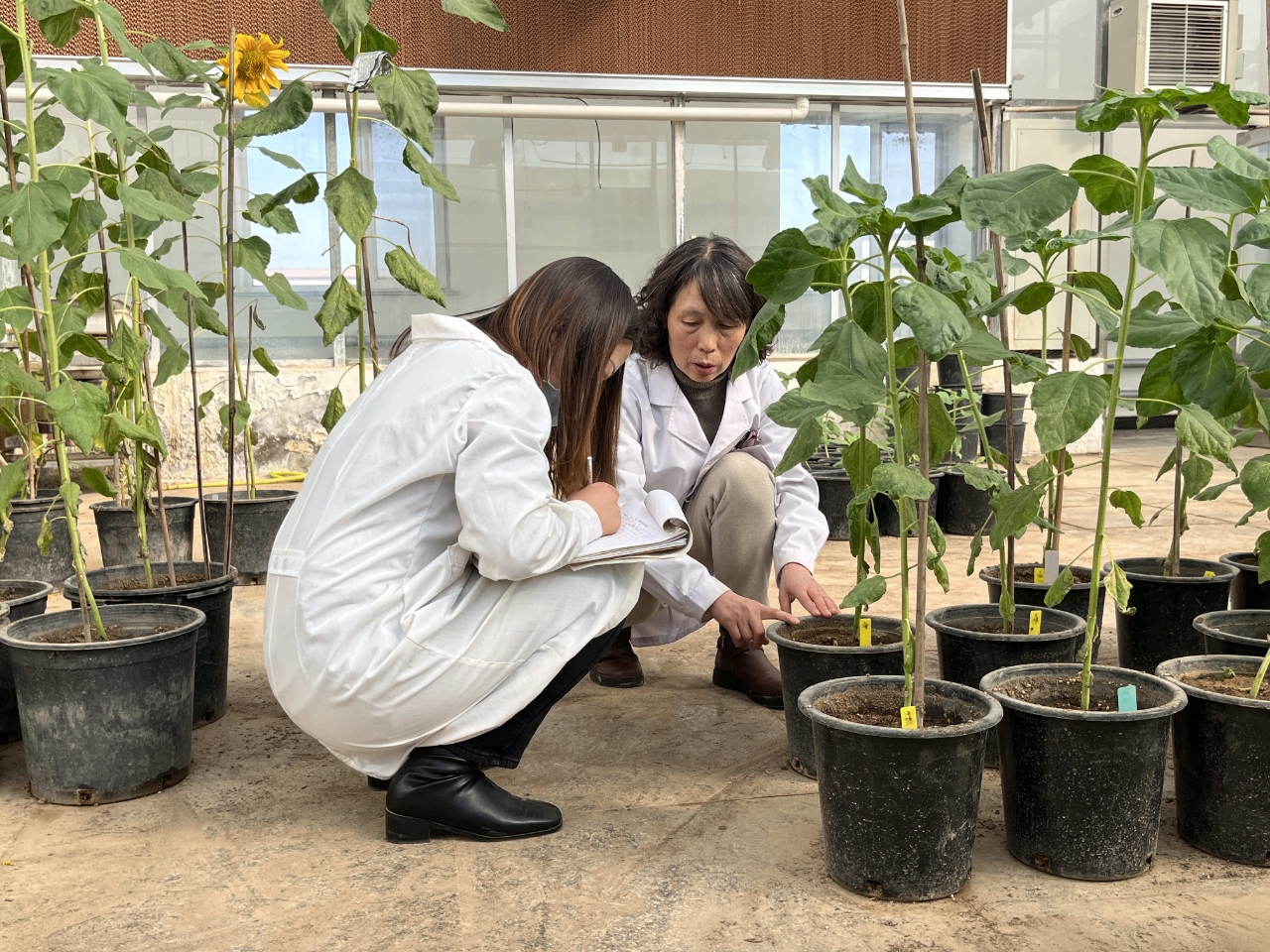 見到三瑞農(nóng)科向日葵技術(shù)研究院副院長馮九煥時,她正在暖棚里和同事一起觀察著向日葵列當(dāng)?shù)那闆r并做著記錄。這也是她最新的研究課題,她認(rèn)為抗列當(dāng)仍是現(xiàn)在我國葵花產(chǎn)業(yè)面臨的一個主要問題,未來抗列當(dāng)將成為一個標(biāo)配,這就意味著所有產(chǎn)品推出都必須有抗列當(dāng)?shù)奶匦?,所以她想要研發(fā)一種可以抗除草劑的品種,因?yàn)槌輨┦褂脧V泛可以控制列當(dāng)以及一般雜草。